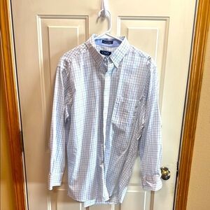 Chaps White and Blue Casual Button Down Shirt Classic Fit Twill Wrinkle Free