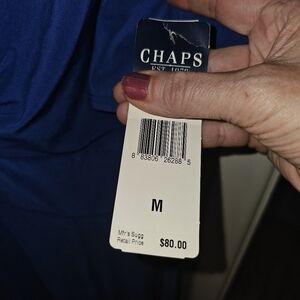 This is a new with tags Chaps dress. The color is blue. The size is M.