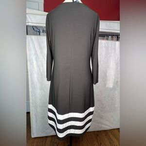 Pre-worn Chaps Women 3/4 Sleeve Polyester Sheath Dress Size Large Black with white stripes