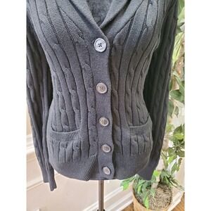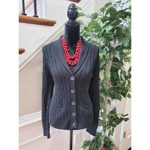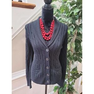 Chaps Women Black 100% Cotton Long Sleeve Buttons Front Cardigan Sweater Size L
