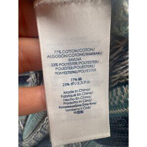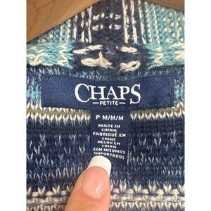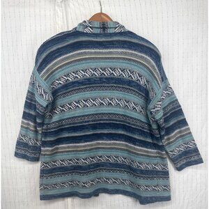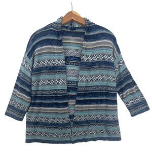 Chaps Women Cardigan Sz M Petite Blue Striped Southwest Boho 3/4-Slv SweaterKnit
