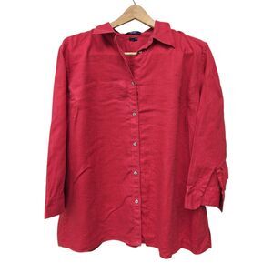 Chaps Women Linen Top 2X Red Button Front Coastal Summer Casual 3/4 Split Sleeve