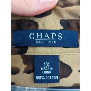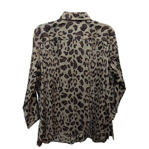 Chaps Women's 1X Brown Leopard Print Cotton Button Front Blouse
