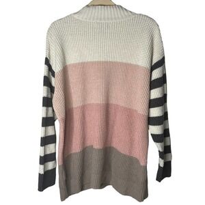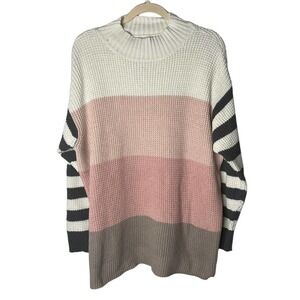 Chaps Women's 2X Pullover Sweater Waffle Knit Tunic Color Block Stripe Pink Gray Beige
