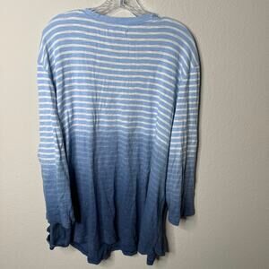 Chaps Women’s 3X Blue White Striped Ombre Henley Top 3/4 Sleeve 100% Cotton