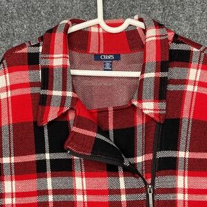 Chaps Women's 3X Sweater Vest Asymmetrical Red Black Plaid Full Zip Collared