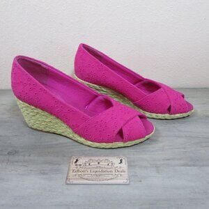 Chaps Women's 8 Dakoda Slip On Espadrille Wedges Geranium Eyelet