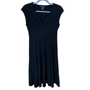 Chaps Women's Black Classic Black Vneck Mid-Calf Cap-Sleeveless Dress Size Small