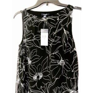 Chaps Womens Black Floral Sleeveless Chiffon Overlay A line Dress Sz 6 New