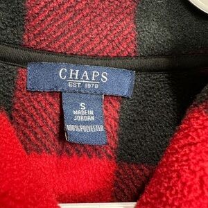 Chaps Womens Black Red Plaid Fleece Long Sleeve Sweater Shirt Jacket Sz S, GUC