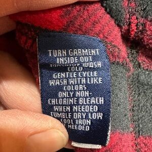 This Chaps women's sweater shirt jacket is a must-have for any fashion-savvy woman. Made from high-quality polyester fleece, it features a plaid pattern and a mock neck. The tight-knit design with long sleeves and button accents gives it a classic, Western, and 90s vibe. It's suitable for various occasions such as travel, casual wear, and workwear, and can be machine washed for easy care. The size is regular-small, and the color is red. This sweater is perfect for the fall, winter, and spring seasons, and was made in Jordan.