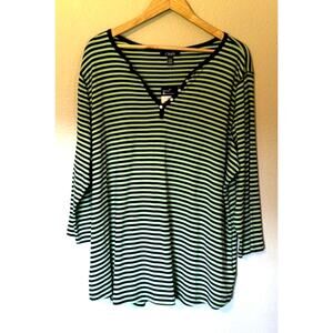 Chaps Women's Blue & Green Striped 3/4 Sleeve Size 3X