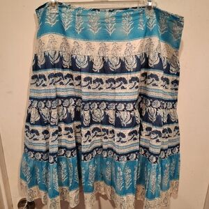 Chaps Women's Blue Multi Print Tiered Midi Skirt Sz 12-Boho Western Hippie Gypsy