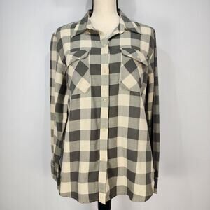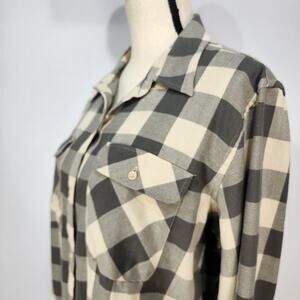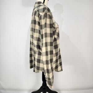 Chaps Women's Cream and Grey Plaid Long Sleeve Button Up Shirt XL