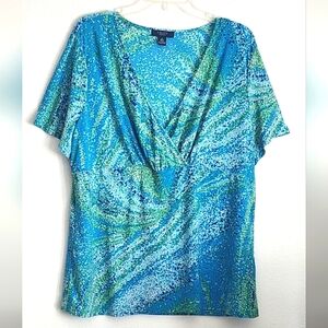 Chaps Women's Deep V-wrap Blouse Short Sleeves Imported Sz 2X