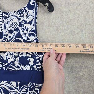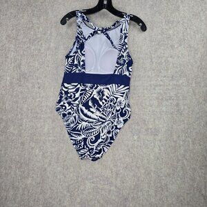 Chaps Womens Floral One-Piece Swimsuit Size 10 Blue & White