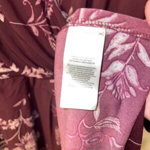 Chaps Womens Floral Print Long Sleeve V-Neck Dress Size 24W Burgundy & Pink