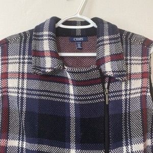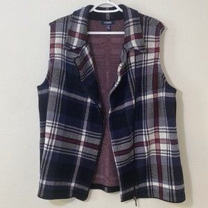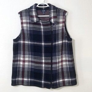 Chaps Womens Knit Sweater Moto Vest Size XXL Plaid Cotton Asymmetric Zip