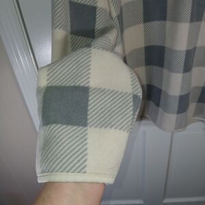 Chaps Gray and off-white plaid/buffalo check pattern size Large, Quarter-zip pullover, mock neck, fleece fabric. Perfect for comfort and warm casual wear.