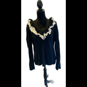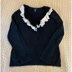 Chaps Women’s Lightweight Sweater Top Plus Size XL Navy Blue V Neck Lace Ruffle