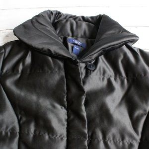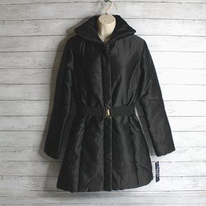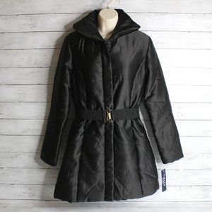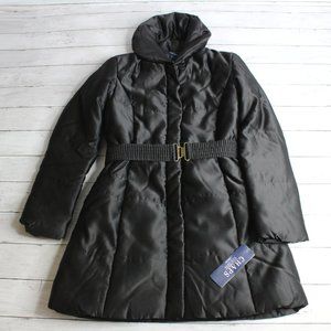 Chaps Women's Long Winter Puffer Coat Size S Black Quilted Belted