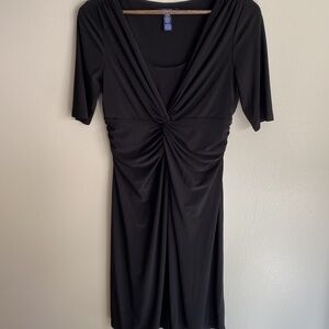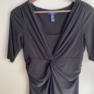 Chaps Womens Medium Midi Black Solid Knot Front Empire Dress Short Sleeves