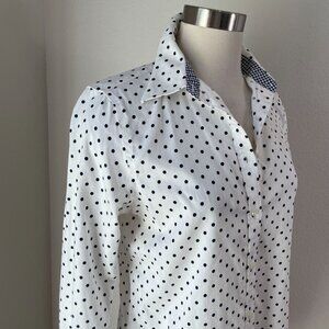 Chaps Womens Medium Navy Up White Polka Dot Button Up Shirt Long Sleeve Blouse