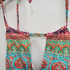 Chaps Women's Multicolor Boho Ikat Keyhole Swim Halter Tankini Swim Top Sz 12