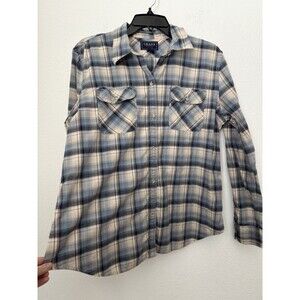 Chaps Womens Plaid Blue Long Sleeve Button Down Shirt Chest Pockets XL