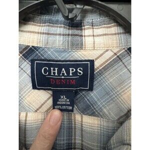 Chaps Women’s Plaid Blue Long Sleeve Button Down Shirt Chest Pockets XL