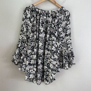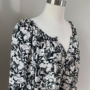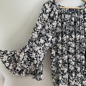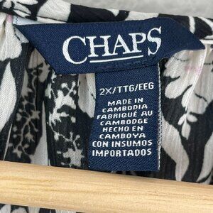 Chaps Womens Plus 2X Black White Boho Floral Ruffle Sleeve Blouse Shirt
