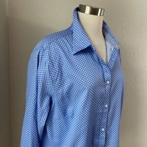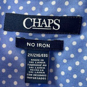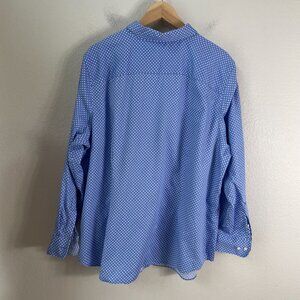 Chaps Womens Plus 2X Blue Polka Dot No Iron Button Up Shirt Blouse