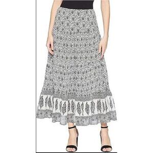 Chaps Womens Plus 3X Black White Tiered Maxi Skirt