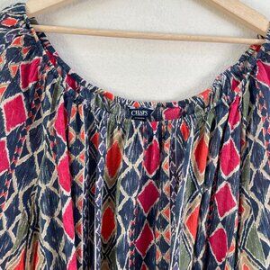 Chaps Womens Plus 3X Ikat Peasant Top Long Sleeve Boho Blouse Shirt