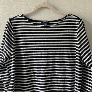 Chaps Womens Plus Size 2X Multicolor Nautical Stripe Cotton Blend Blouse