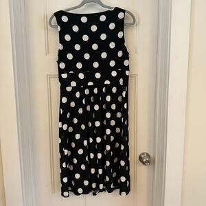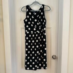 Women’s Sleeveless Chaps Dress. Black with large White Polka Dots 100% Polyester Machine Washable