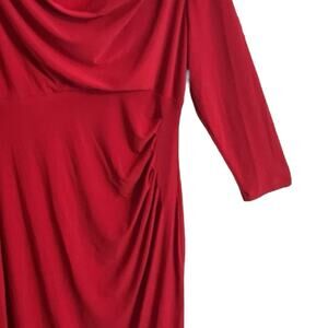 Chaps Women's Red Cowl Neck Ruched Sheath Dress Flattering 3/4 Sleeve -Size L