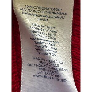 This Chaps sweater features a bold red hue and a textured knit design. Its V-neck and long sleeves offer both style and comfort, making it a reliable choice for casual and work settings. Crafted from 100% cotton, it's machine washable, ensuring easy maintenance.