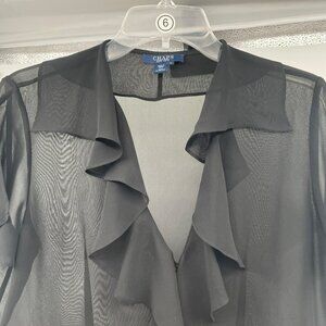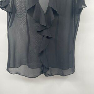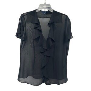 Chaps Womens Sheer Blouse Short Sleeve Ruffle Black Size 12