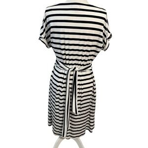 Chaps Women's Short Sleeves Crewneck Knit Dress Size Medium Black and White Striped