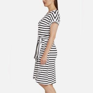 Chaps Women's Short Sleeves Crewneck Knit Black & White Striped Dress M Preppy