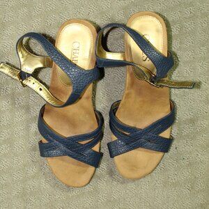 Chaps Women's Size 10 Blue Strappy 3" Wedge Heels
