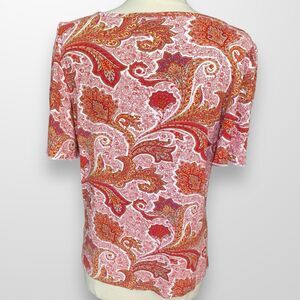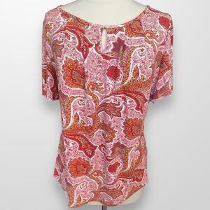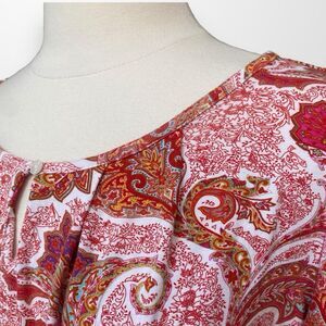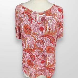 Chaps Women's Size 1X Top Shirt Short Flutter Sleeve Stretch Paisley Scoop Neck