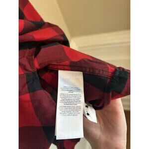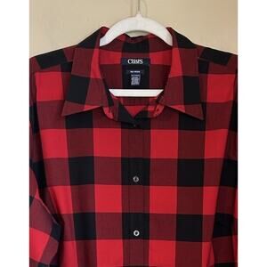 Chaps Womens Size 2X No Iron Red Black Buffalo Plaid Button Up Shirt Cabin