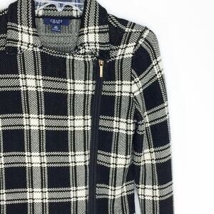 Chaps Womens Size XS Knit Plaid Moto Jacket Black White Asymmetrical Zip Front