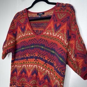 Chaps Women’s Southwestern Aztec Sweater Red Orange Size Large