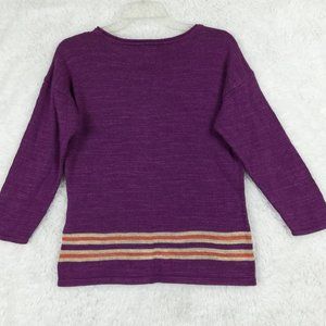 Chaps Womens Sweater Knit Aztec Desert Purple Pullover Striped 3/4 Sleeve M