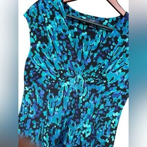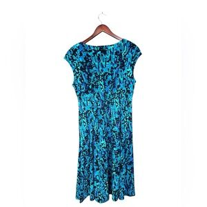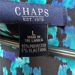 Chaps Women’s V Neck Blue Green Geometric Stretchy A Line Dress Size Large