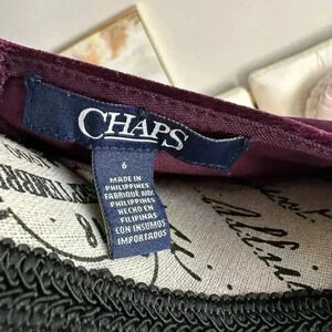 Chaps Women's Velvet Dress Size 6 Plum Purple Faux Wrap V-Neck Knee Length