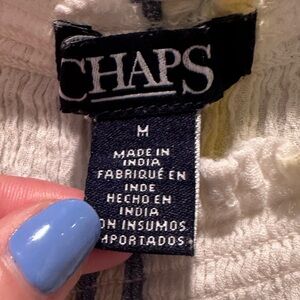 Chaps Women's White Striped Cotton Blouse Size Medium Lightweight Summer